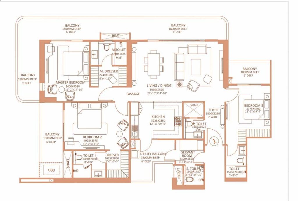 3BHK Luxe Unit Plan
