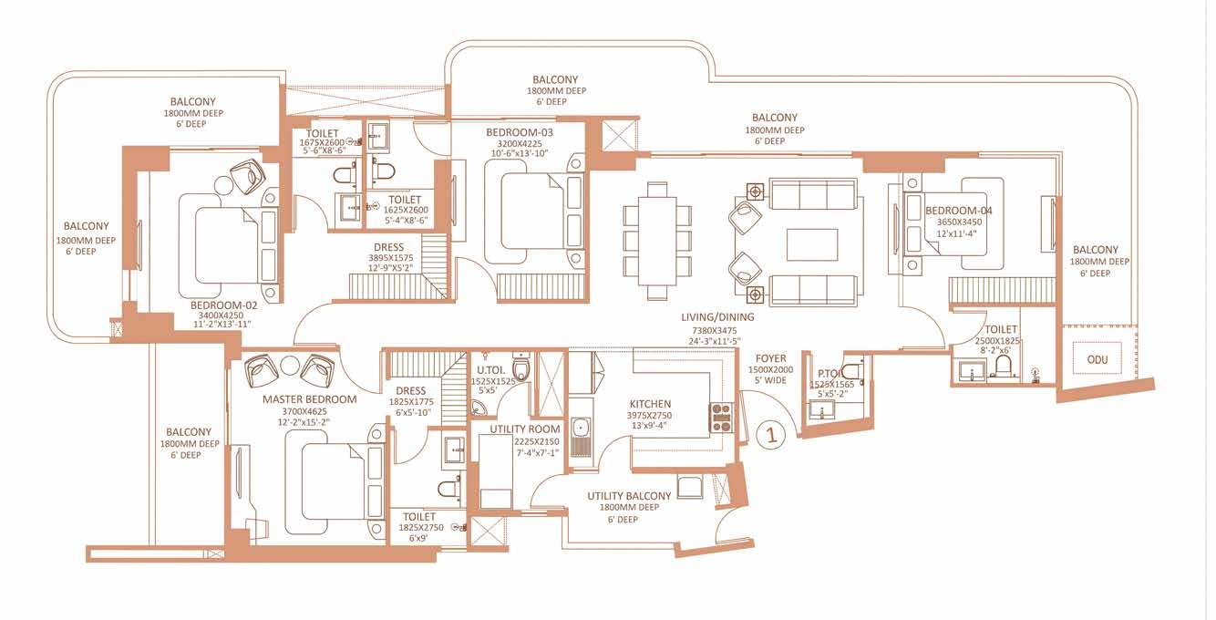 4 BHK Luxe Unit Plan